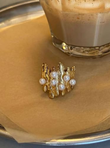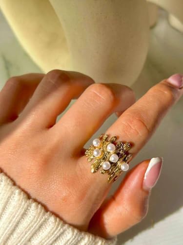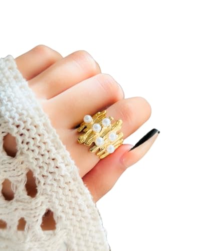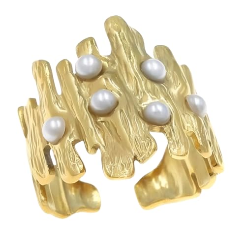 Generic - خاتم انيق من الستانلس ستيل بتصميم فريد مستوحى من الطبيعة، مزين بصف من اللؤلؤ الابيض اللامع، قطعة عصرية وجريئة تضيف لمسة من الفخامة والتميز لمظهرك.