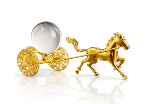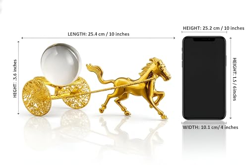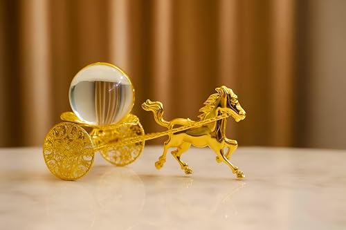 Generic - تمثال صغير انيق - عربة حصان ذهبية رائعة مع كرة كريستالية، قطعة ديكور منزلية راقية مثالية للعرض على الرفوف أو الطاولات الجانبية أو رف العطلات مما يضيف لمسة من الأناقة.
