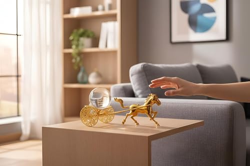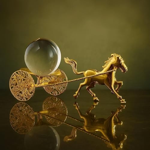 - تحتوي القطعة على كرة زجاجية شفافة كريستالية مثبتة بأمان فوق العربة، وتعمل كعنصر زخرفي آسر وجسم فنغ شوي عملي؛ تلتقط الكرة الكريستالية الضوء المحيط وتنكسر، مما ينتج انعكاسات مبهرة تشبه المرآة تضاعف التأثير البصري وتجلب إحساسًا بالطاقة المشعة إلى الغرفة.
