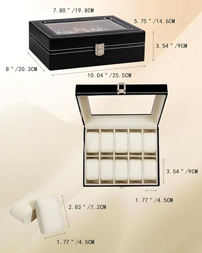 - مصمم لتعدد الاستخدامات، يتضمن المنظم مساحة تخزين محددة تحمل ما يصل إلى 10 ساعات على وسائد قطيفة خلف نافذة رؤية شفافة، إلى جانب مرآة مدمجة، مما يجعله مثاليًا لهواة الجمع وعشاق الموضة لعرض إكسسواراتهم العزيزة وحمايتها والعثور عليها بسرعة بدون فوضى في مساحتك.