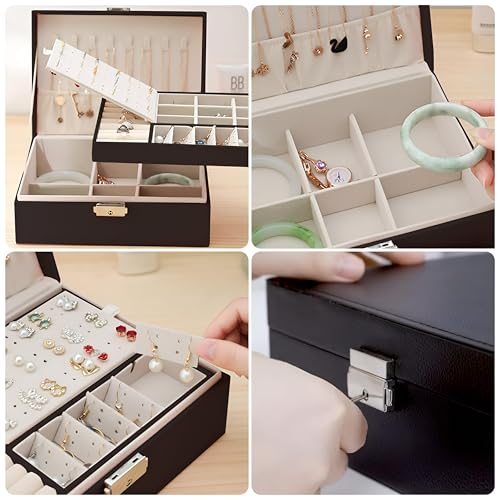 - يتميز منظم تخزين المجوهرات والساعات الفاخر هذا بتصميم راقي مزدوج الطبقات مع مساحات تخزين متعددة، بما في ذلك خطافات السلاسل ولوحة عرض الحلقان القابلة للإزالة وفتحات للخواتم وأقسام للأساور، مما يضمن تنظيم جميع الإكسسوارات بعناية وسهولة الوصول إليها داخل المنظم الجلد الصغير باللون الأسود مقاس 23 سم× 17 سم× 9 سم، مما يجعله مثاليًا لتعزيز غرفة تبديل الملابس.