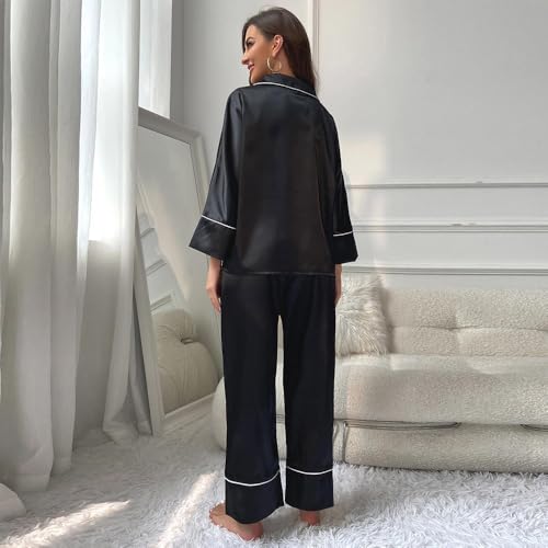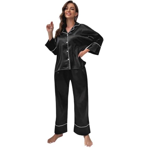 FRIDAYIN - Elegant style Home style Lapel Solid color Color contrast Buttons Pocket Regular sleeve Pajama