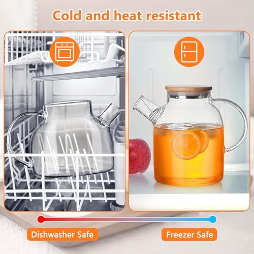 Generic - إبريق شاي من زجاج البوروسيليكات الشفاف مع غطاء من الخيزران، تصميم مقاوم للحرارة بنمط عصري، لإعداد أوراق الشاي وجميع أنواعه بمقبض أنيق