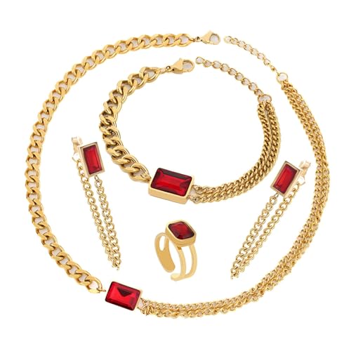 Generic - Elegant Trio - A refined stainless steel jewelry collection in gold tone, featuring chain, ring, earrings, and necklace to create polished looks with lasting rust resistance and everyday versatility f