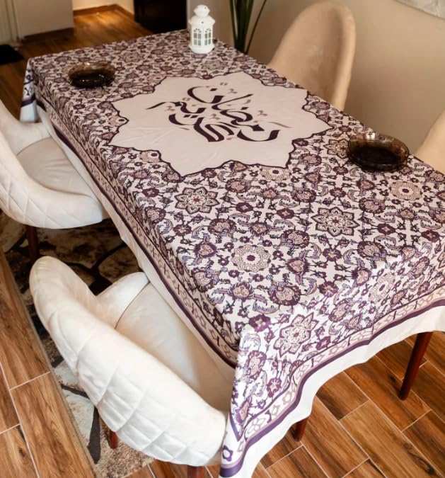 - تصميم أنيق: يتميز بخط عربي جميل يتمحور حول نمط بني وبيج مزخرف بزخارف زهور معقدة، مما يضيف لمسة راقية إلى مساحة تناول الطعام الخاصة بك