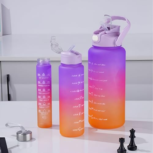 Generic - Elegant water bottle set - 3 stimulating sizes (2000 ml, 900 ml, 300 ml) with graded, solid, leak-resistant, BPA-free for daily use at work, gym or school (multi-color)