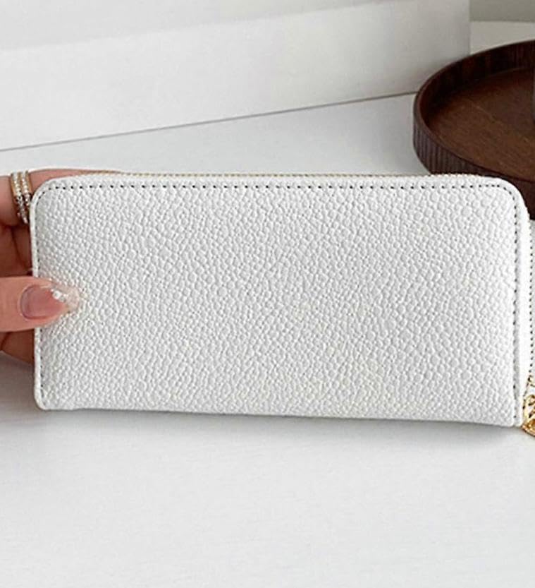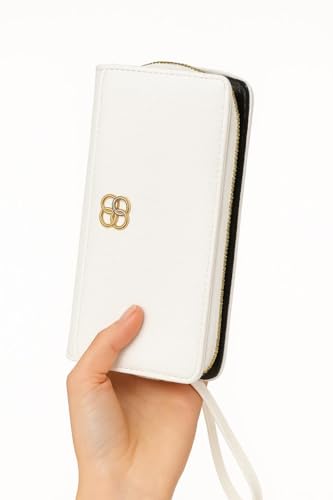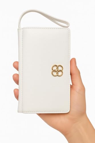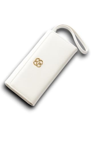 Generic - Elegant White Leather Wallet with Strap, Modern Card Holder with Gold Trim, Classic Design for Women