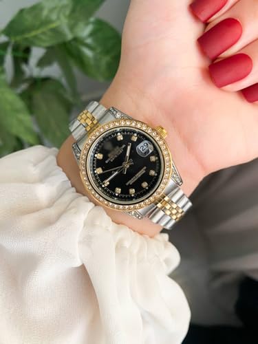 Generic - Elegant Women’s Analog Stainless Steel Watch – Timeless Wristwatch with Stylish & Sleek Design (Black stones)