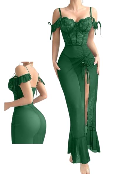Generic - Elegant Women's Evening Dress, Green, Corset with Ruffle Side Slit