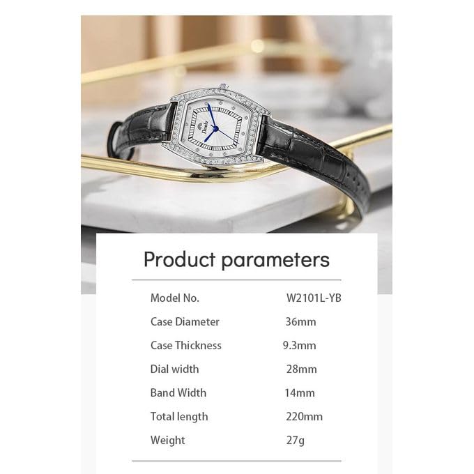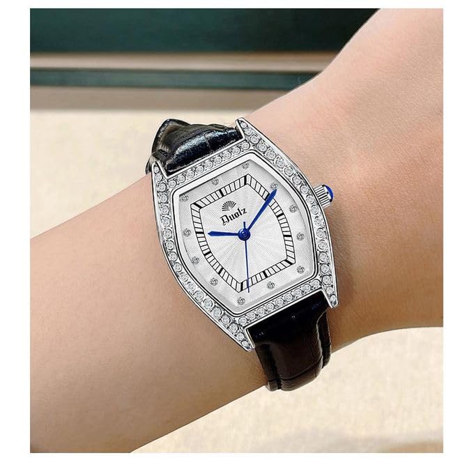 Generic - ساعة كوارتز أنيقة للنساء - مينا رفيع مرصع بالزركون الماسي، وسوار جلدي، ساعة يد عصرية خفيفة الوزن، مقاومة للماء للارتداء اليومي