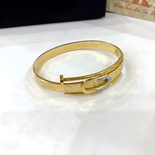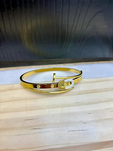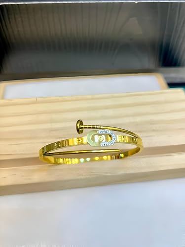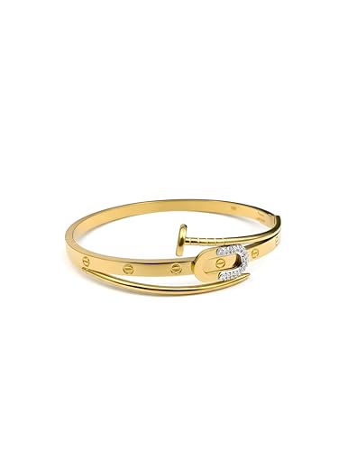 Generic - Elegant Wristwear - Gold Bangle with Screw Pattern, Nail Embellishments, Sparkling Crystals and Hinged Closure for Sophisticated Styles