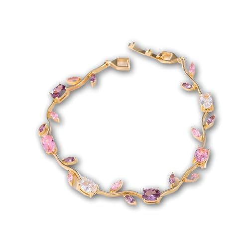 Generic - Elegant Zircon Tulip Bracelet - Gold-plated stainless steel band with intricate tulip detailing and sparkling colored stones, perfect for daily wear or gifting.