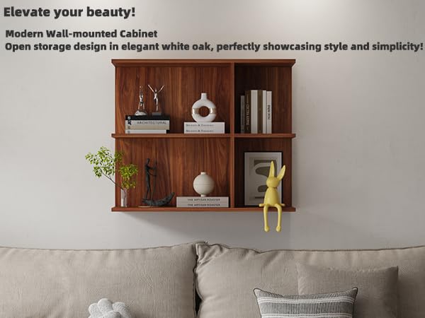 - 【رف حائط مفتوح 36 انش】: يتضمن التصميم الواسع المثبت على الحائط بعرض 36 انش أربعة أقسام تخزين مقسمة، مثالي لعرض الكتب والديكور والنباتات والمقتنيات.
