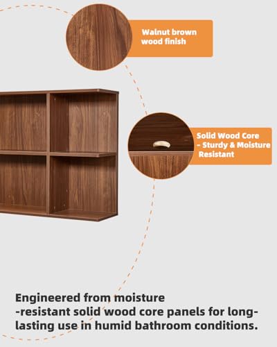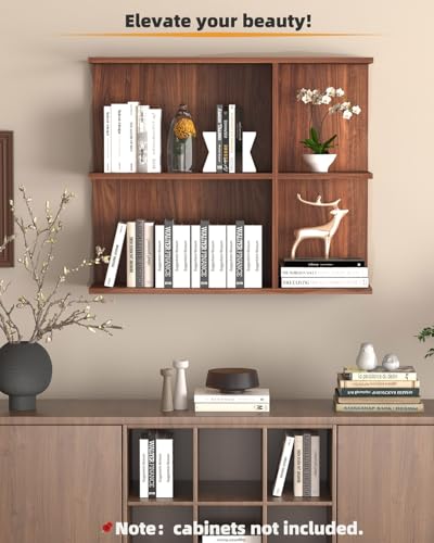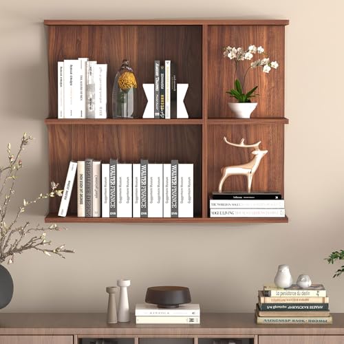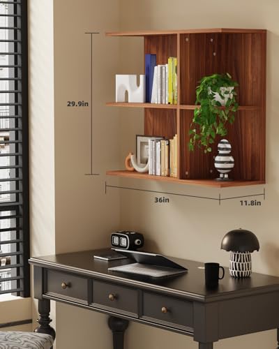 Elehome - خزانة رف مفتوحة تثبت على الحائط 36 انش، قلب من الخشب الصلب مع لمسة نهائية بلون بني جوزي، رف تخزين معلق على الحائط لغرفة المعيشة والمكتب وغرفة النوم والحمام