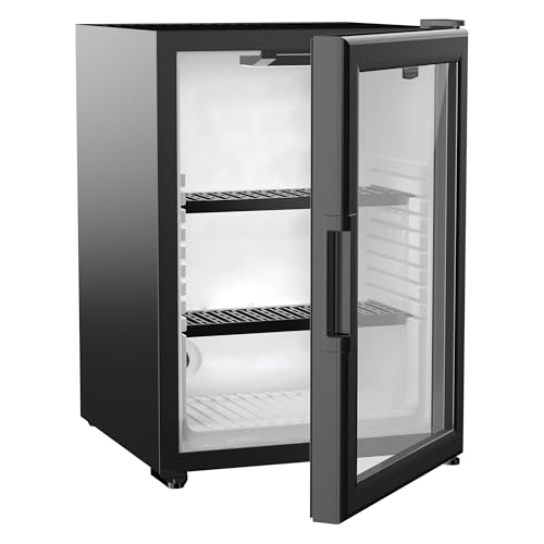 - ELEGANT GLASS DOOR & LED: Features a double-paned tempered glass door that provides a clear view of contents, paired with a cool-blue internal LED light for a premium, modern look.