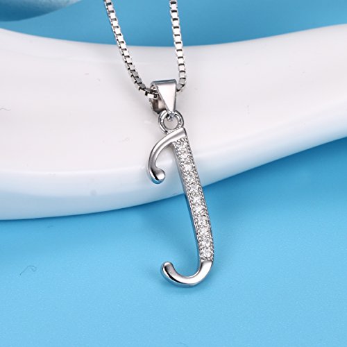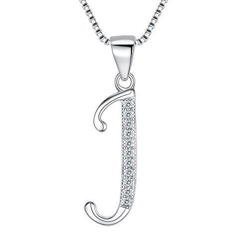 EleQueen - EleQueen Women Party Initial 26 Letters Alphabet J Pendant Necklace 925 Sterling Silver CZ Chain Jewelry Gift, Valentine's Day/Mother's Day/Christmas Jewerly Gift for Wife/Mom
