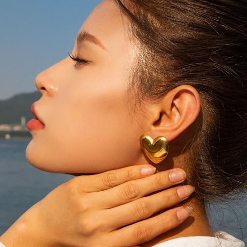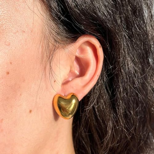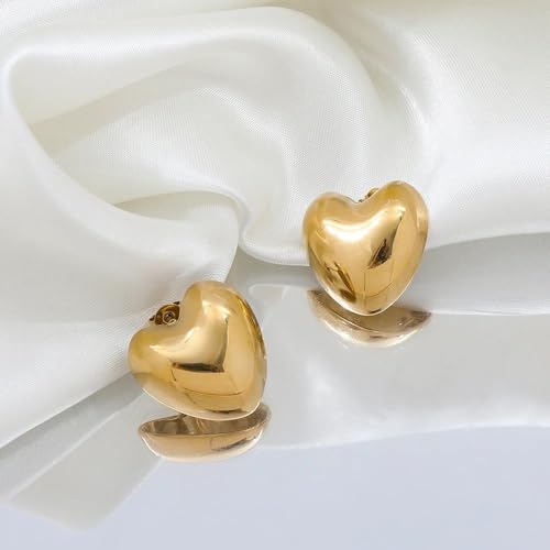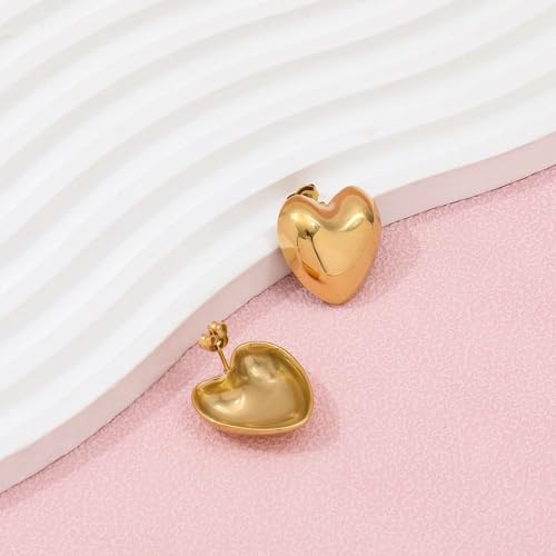 Qshop - Elevate Your Style with Our Gold Chunky Heart Earrings Set 18K Gold Plated Stainless Steel Hypoallergenic Jewelry for Girls and Women by QSHOP