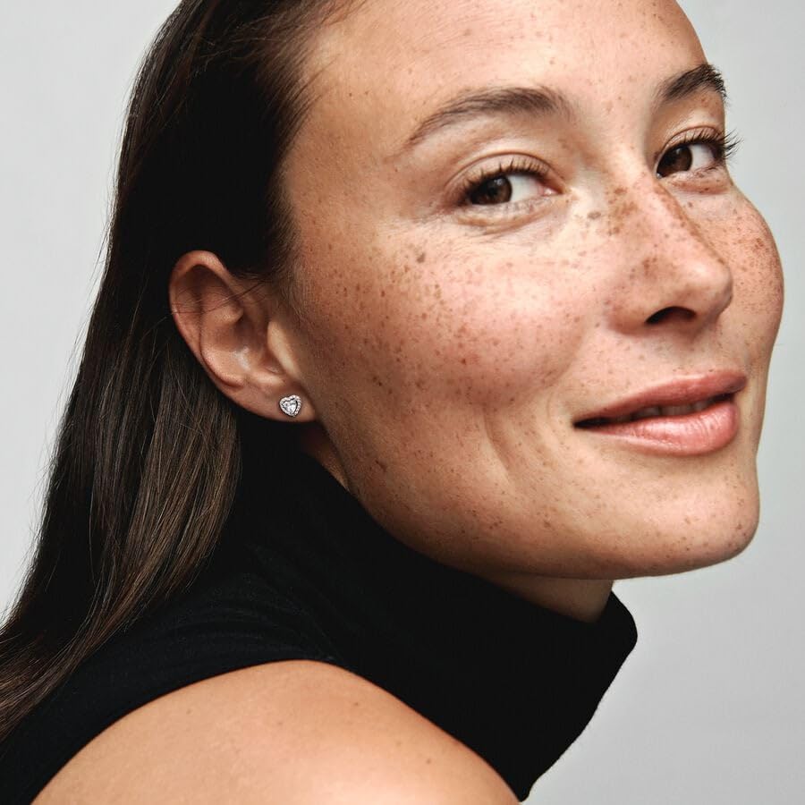 Generic - مجموعة هدايا بتصميم قلب ابيض مرتفع من الفضة الاسترليني عيار 925 وقلادة وخاتم واقراط