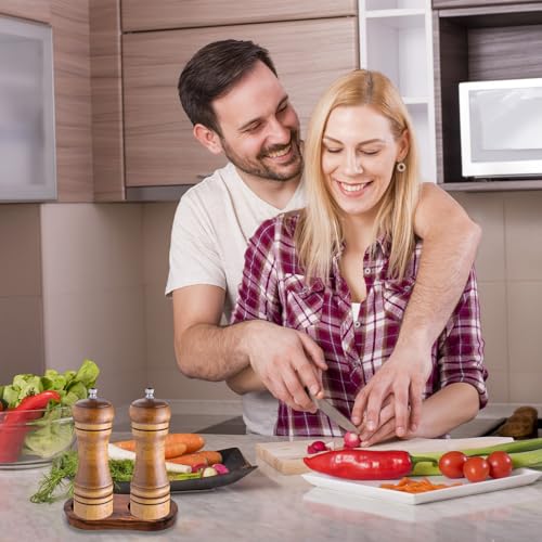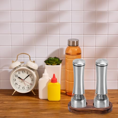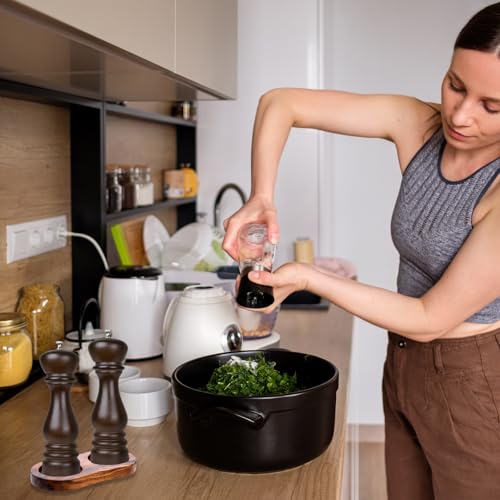 - High-Quality Materials: Salt and pepper grinder set is made of high-quality wood, not easy to wear, deform or break strong durable elegant style. Solid wood tray base has a smooth and polished surface, delicate touch, light weight not easy to fade, storage trays are finely crafted with details to meet the daily storage needs of the kitchen