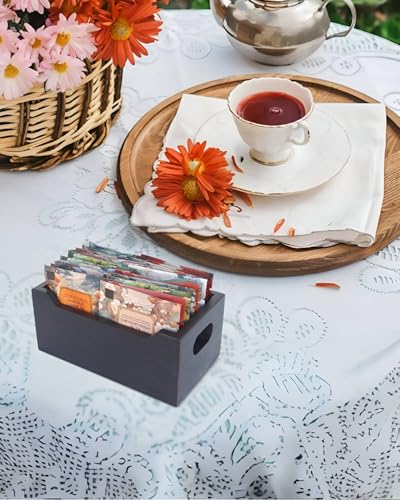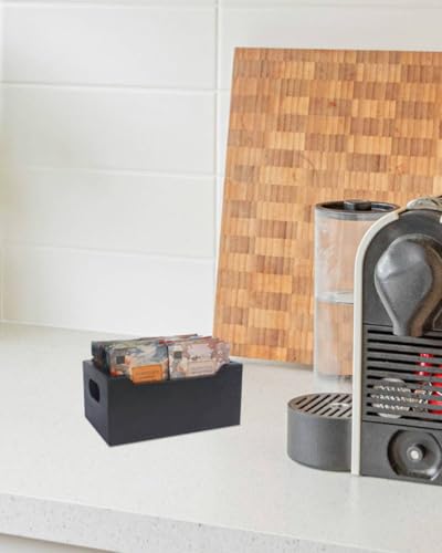ElfBello - منظم اكياس الشاي، حامل اكياس شاي صغير، علبة صندوق تخزين الشاي مع مقبض، صندوق شاي خشبي لاكياس الشاي - عبوات السكر - عبوات المشروبات - المحليات، اسود، من الفبيلو
