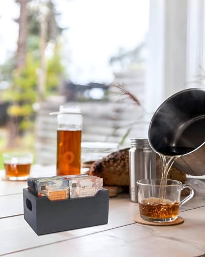 - إضافة لطيفة إلى سطح الطاولة. ارتقِ بديكور مطبخك مع منظم أكياس الشاي اللطيف الخاص بنا. بفضل تصميمه البسيط والأنيق ولونه الأسود الخالد، فإنه يعزز المظهر الجمالي لسطح الطاولة دون عناء.