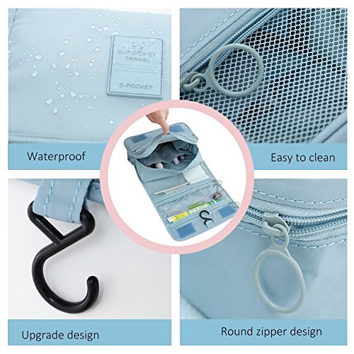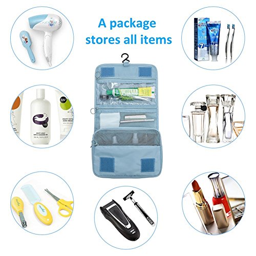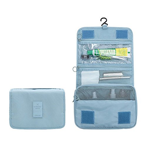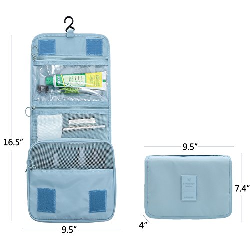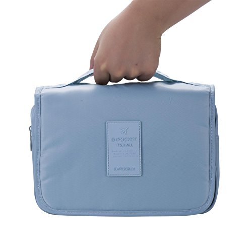 ElifeAcc - ElifeAcc Hanging Travel Toiletry Bag Folding Bathroom Organizer Portable Cosmetic Wash Bag for Women Girls, Light Blue, One Size, Toiletry Bag
