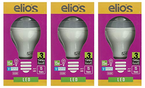 Elios - elios 15W LED Bulb Pack of 3 - Bright White 6500K - 1500 Lumens - Base E27 - Frosted Bulb Body - 4 Year Warranty - 25000 Hours Life
