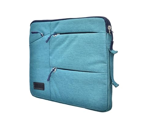 Generic - حافظة جيب من القماش بها ثلاثة جيوب رئيسية وثلاثة جيوب أمامية بسوستة وتصميم بسيط مزود بمقبض جانبي قوي متوافق مع أجهزة اللاب توب المختلفة مقاس 35.56 سم / 33.78 سم من ايليت - تركواز