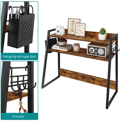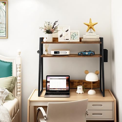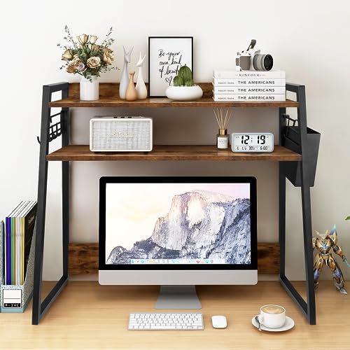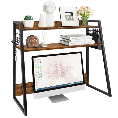 ELITEROO - رف مكتب من ايليتيرو، خزانة كتب مقاس 38.5 انش لشاشة الكمبيوتر، منظم سطح المكتب الخشبي، رف عرض للكتب، رف تخزين للمنزل والمكتب والسكن، بني