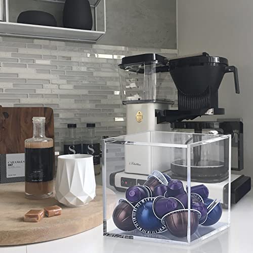 - Product Info -Dimensions(LxWxH):5.9" x 5.9" x 5.9" , Large capacity: Can hold about for 30 VertuoLine /76 OriginalLine /25 K cup. Packing included: 1 x Acrylic Coffee Pods Holder (Coffee pods are not included.Please pay attention to the size before purchasing)
