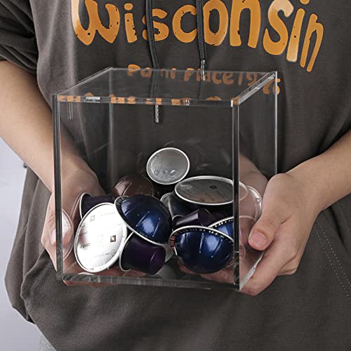 - Storage & Display -This clear acrylic box is perfect for organizing coffee capsules, tea bags, sugar packets, jewelry, hair band, photos, pictures, stones, flowers, sea shells, collectibles and other accessories.Clear design makes it easy to see what is stored inside