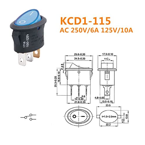 - مفتاح تشغيل وإيقاف بيضاوي الشكل مع مصباح (أزرق) 3 دبابيس (KCD1-115).