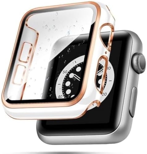 ELMO3EZZ - ELMO3EZZ 40mm Case Compatible with Apple Watch, with Built-in Tempered Glass Screen Protector, PC Cover for iWatch Series 8/7/SE 6 5 4/3 2 for Choice (40mm, White+ Rose Gold Edge)