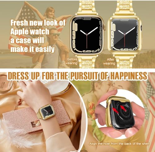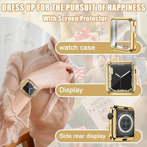 ELMO3EZZ - ELMO3EZZ 44mm Cover Soft TPU Anti-Scratch Lightweight 44mm Iwatch Case All-Around Screen Protector, Optional Cases Compatible with Apple Watch Series 9/8/7 Series SE2/6/SE/5/4 Series 3/2/1 - Gold