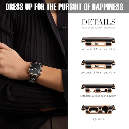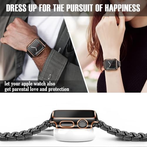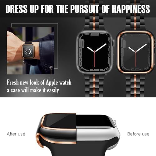 ELMO3EZZ - ELMO3EZZ 45mm Case Compatible with Apple Watch, with Built-in Tempered Glass Screen Protector, PC Cover for iWatch Series 8/7/SE 6 5 4/3 2 for Choice (45mm, Black + Rose Gold Edge)