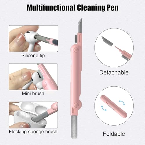 ELMO3EZZ - ELMO3EZZ 7 in 1 Electronic Cleaner Kit, Keyboard Cleaner Kit with Brush, 3 in 1 Cleaning Pen for Airpods Pro, Multifunctional Cleaning Kit for Earphone, Keyboard, Laptop, Phone, PC Monitor (Pink)