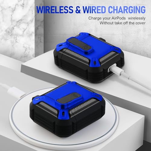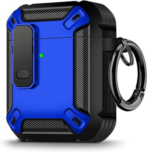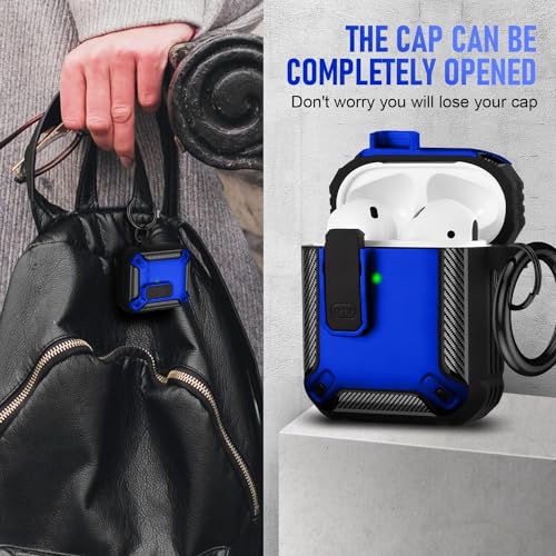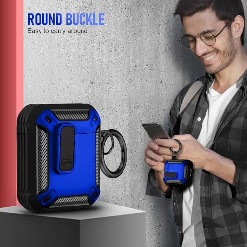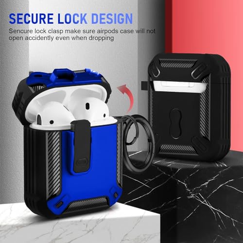 ELMO3EZZ - ELMO3EZZ Airpod 1&2nd Generation Case Cover with Secure Lock Clip, Military Armor Series Full-Body Rugged Hard Shell for Men Women with Keychain,Shockproof Protective Case for AirPod 2 & 1,Blue