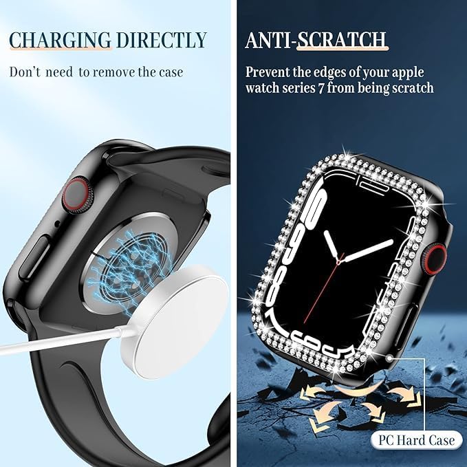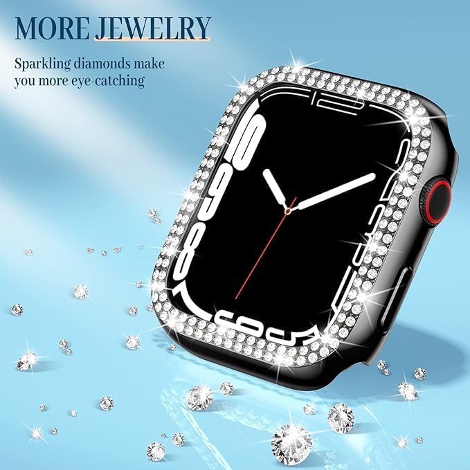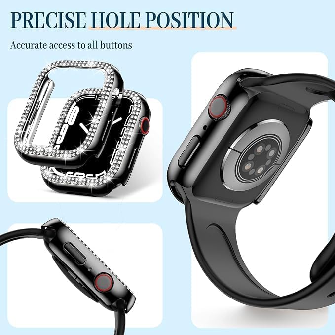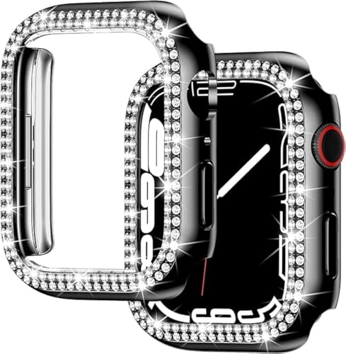 ELMO3EZZ - ELMO3EZZ Bling Case Compatible for Apple Watch Case Series 7 45mm, [No Screen Protector] PC Hard Edge Cover Diamond Bumper Accessories for iWatch Women (Black, 45mm)