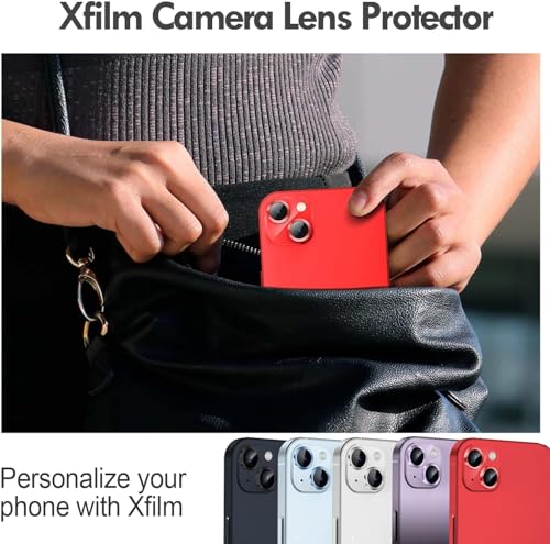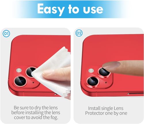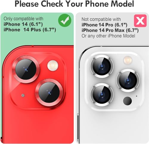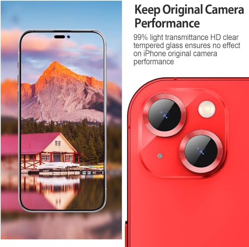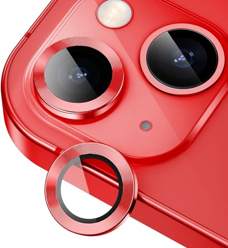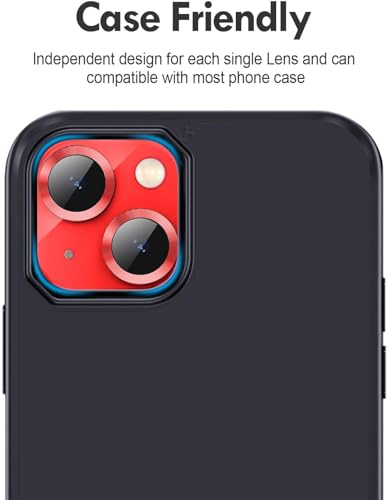 ELMO3EZZ - ELMO3EZZ Camera Lens Protector for iPhone 14 / iPhone 14 Plus, Strong Adsorption 9H Hardness Tempered Glass Camera Screen Protector Individual Metal Ring Cover, Case Friendly (Red)