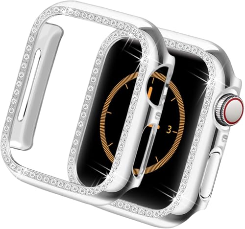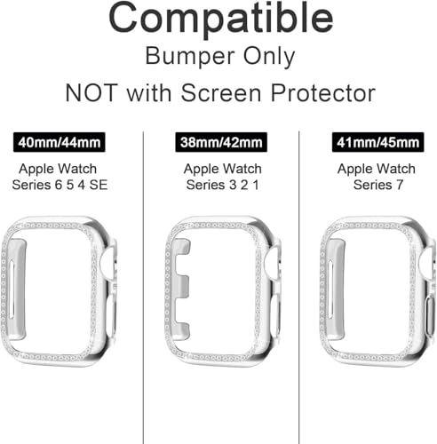 ELMO3EZZ - ELMO3EZZ Case Compatible With Bumper Diamond Case Compatible with Apple Watch Series 8 Series 7 41mm, Crystal Diamonds PC Plastic Protector Case Cover Frame For Apple Watch Series 8/7 41mm (Silver)