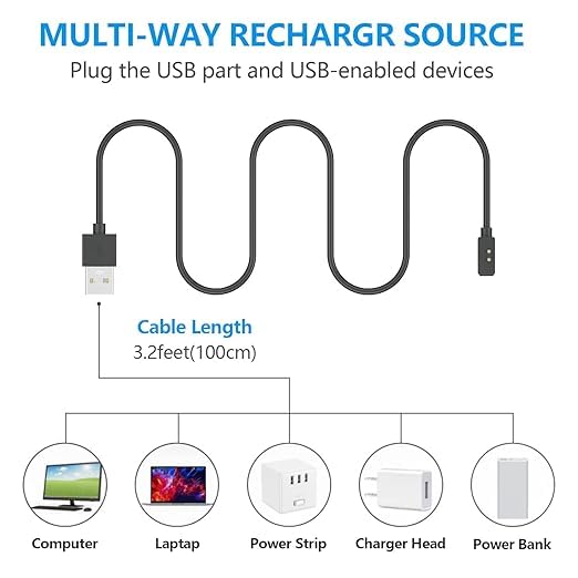 ELMO3EZZ - شواحن لساعة شاومي ريدمي 3 - ووتش 2 لايت - مي باند 7 برو بطول 1 متر كابل شاحن USB متوافق مع ساعة
