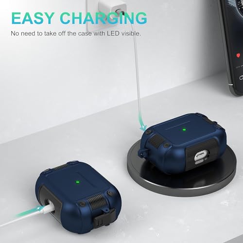 ELMO3EZZ - ELMO3EZZ Compatible Airpods Pro Case Cover with Lock, Full-Body Military Rugged Air Pod Pro Shockproof Case for Men Women Hard Shell iPod Pro Protective Skin with Keychain for Airpods Pro 2019, Blue