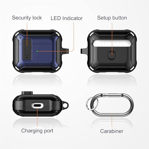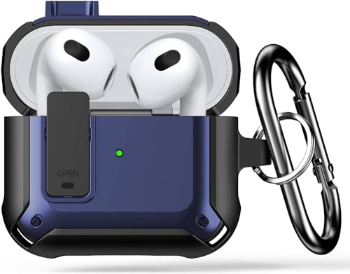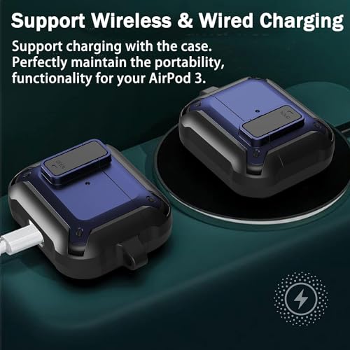 ELMO3EZZ - ELMO3EZZ Compatible with Airpods 3rd Generation Case 2021, Shockproof Protective Case Cover for Airpods 3 Charging Case with Keychain, Full-Body Rugged Hard Shell for Air pods 3, Not Include AirPods
