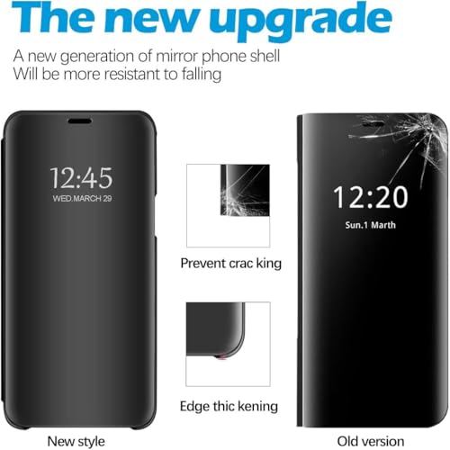 ELMO3EZZ - جراب حماية غير أصلي بتصميم عاكس من المعز من الجلد مضاد للصدمات مع حامل متوافق مع موبايل سامسونج S24 الترا قابل للطي لموبايل جالاكسي S24 الترا بشبكة الجيل الخامس 5G، بلون أسود، بولي كربونات