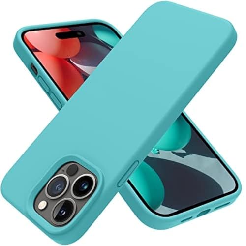 ELMO3EZZ - جراب حماية رفيع من السيليكون بتصميم مضاد للصدمات لموبايل ايفون 14 برو ماكس 6.7 بوصة الموعز ازرق سماوي أكريليك