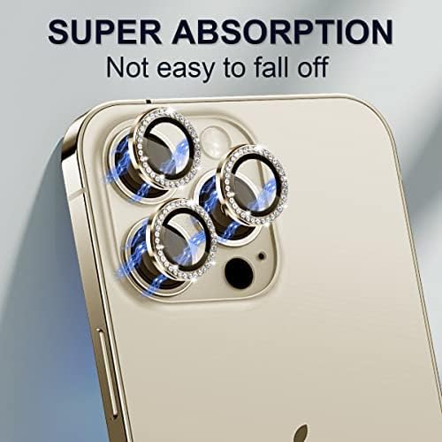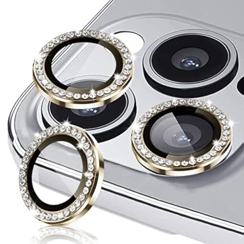 ELMO3EZZ - واقي عدسة الكاميرا ذو نمط الماسي لموبايل آيفون 14 برو 6.1 بوصة وآيفون ماكس 6.7 من الزجاج المقوى بتصميم حلقة لامعة المعز دايموند جولد ذهبي