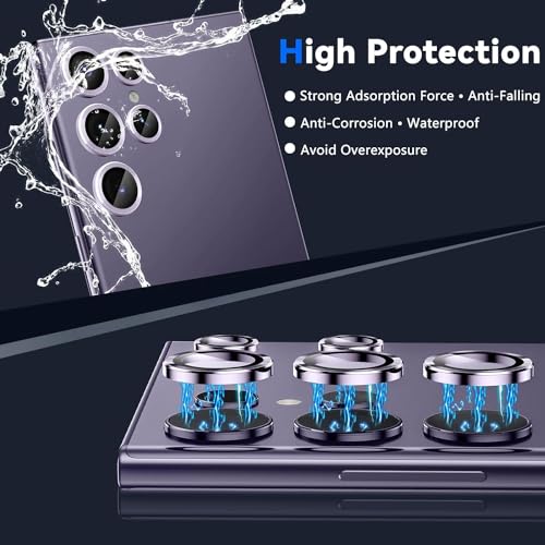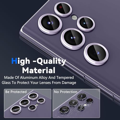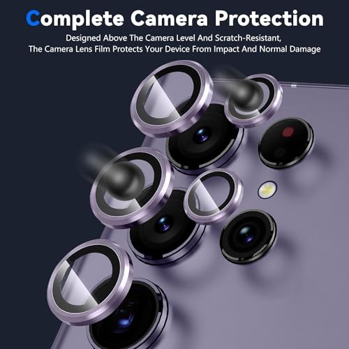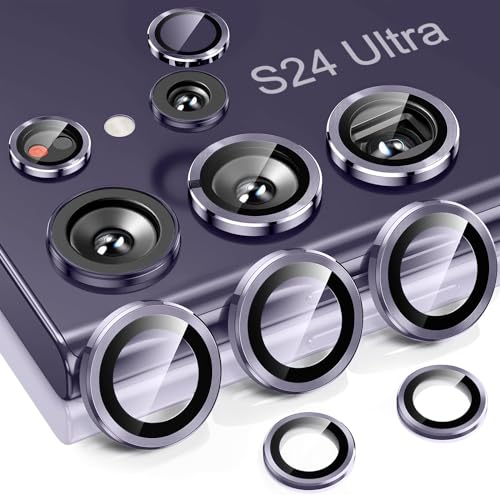 ELMO3EZZ - واقي عدسة كاميرا من الزجاج المقوى بتصميم رفيع للغاية مقاوم للخدش بحواف ألومنيوم ونمط فردي متوافق مع جراب الحماية لموبايل سامسونج جالاكسي S24 الترا المعز لون أرجواني