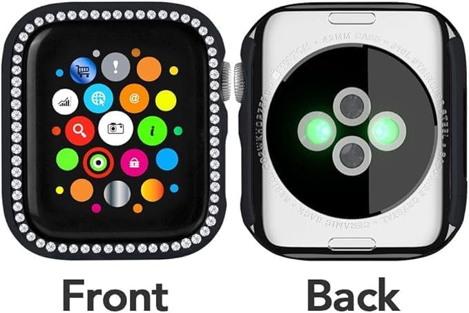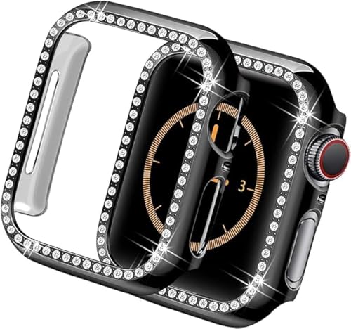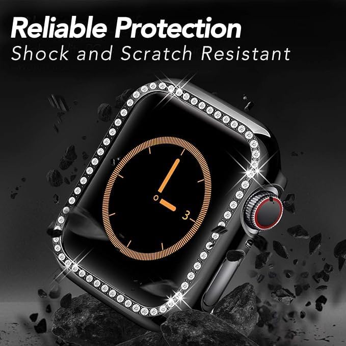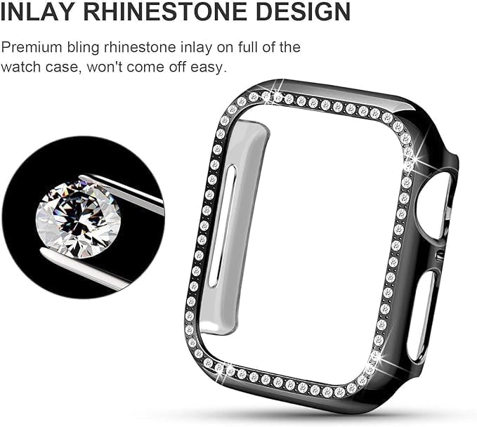 ELMO3EZZ - جراب حماية صلب من البولي كربونات مرصع بأحجار الراين والكريستال للفتيات من المعز لسلسلة اي ووتش 7 45 ملم، أسود