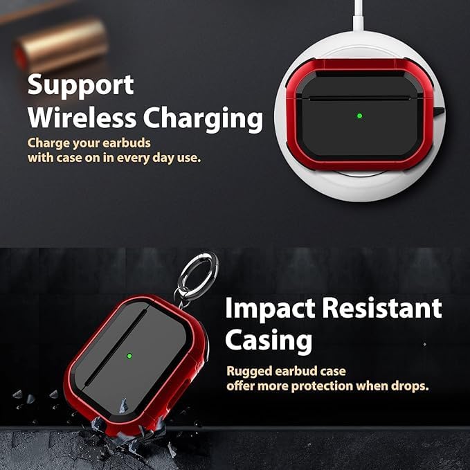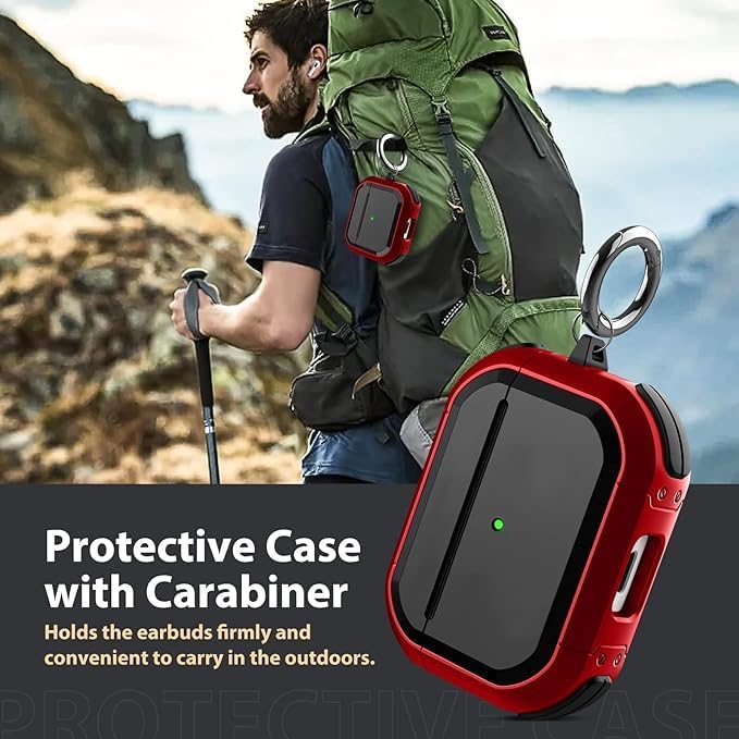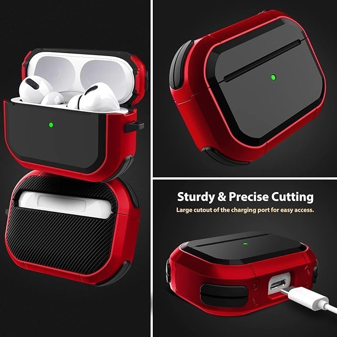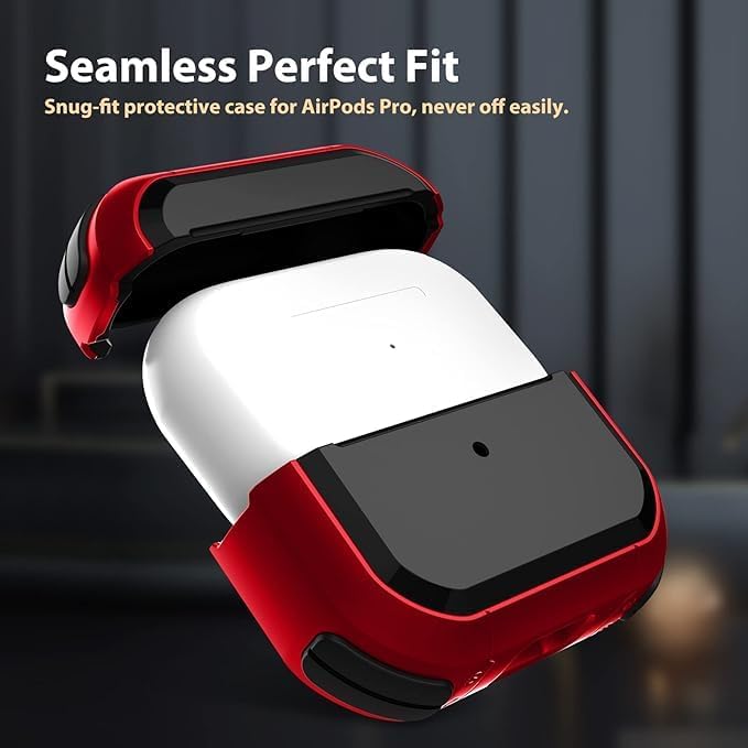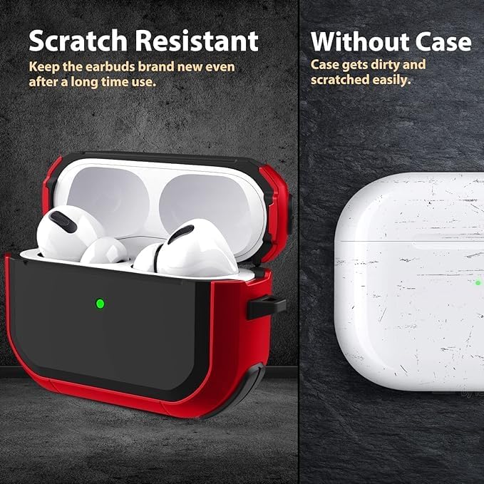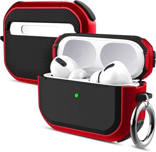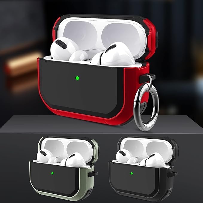ELMO3EZZ - حافظة حماية صلبة مع حلقة تثبيت لسماعات ابل ايربودز برو من المعز (أسود)، صدفة