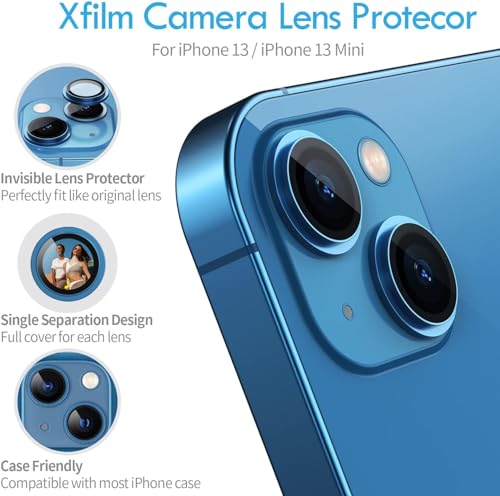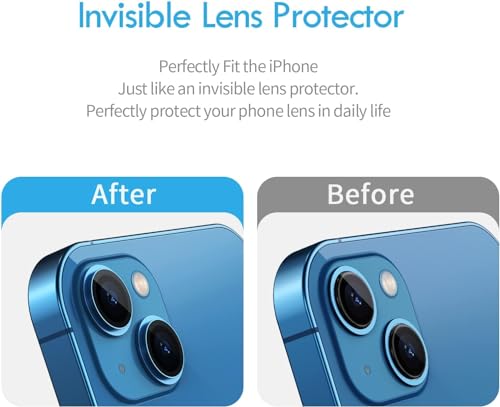 ELMO3EZZ - ELMO3EZZ Invisible Camera Lens Protector for iPhone 13 /iPhone 13 Mini, HD Clear Tempered Glass Camera Lens Protection Cover, Case Friendly, Scratch Proof (Blue)